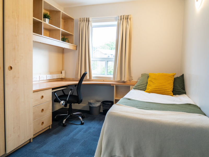On-campus accommodation is in single bedrooms with en-suite bathroom facilities.